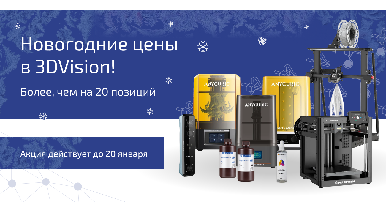 В преддверии праздника наша команда подготовила для вас специальное предложение на оборудование и расходные материалы. В подборке мы собрали популярные модели 3D-принтеров, полимеризационные камеры и персональные 3D-сканеры. А также скидки на отдельные модели принтеров по предзаказу.