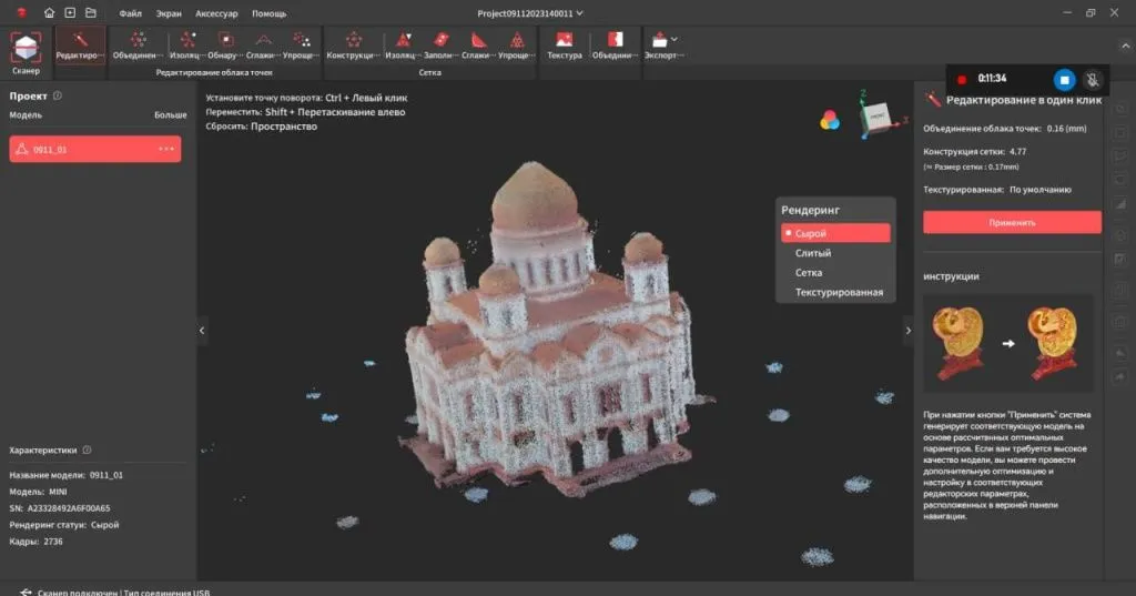 Можно сказать, что реальным преимуществом Mini является способность точно захватывать геометрию, но текстура и цвет оставляют желать лучшего. Хотя возможность непосредственно редактировать и манипулировать данными облака точек в Revo Scan 5 впечатляет.