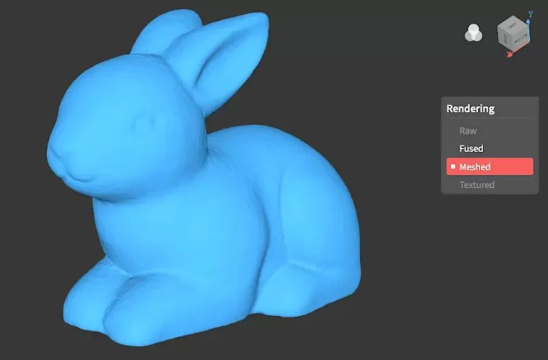 Чтобы проверить этот рабочий процесс, мы использовали керамическую модель кролика, которая имела идеальную геометрию для FDM-печати, включая плоское основание, ограниченные свесы и отсутствие небольших деталей. Мы провели три сканирования: по одному вертикальному и по одному с каждой стороны модели. Используя встроенные инструменты редактирования в Revo Scan 5, была проведена очистка всех трех сканирований и их выравнивание. Это привело к очень плотному облаку точек, которое не очень хорошо подходит для 3D-печати.