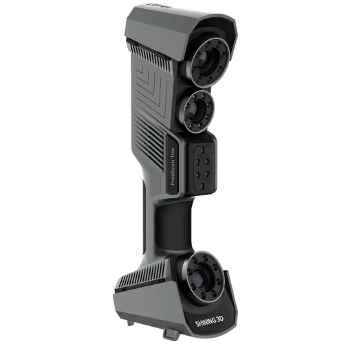 FreeScan Trio – инновационный лазерный 3D-сканер, первый, способный работать без использования маркеров. Он обладает впечатляющей скоростью сканирования до 3 010 000 точек в секунду благодаря наличию 98 лазерных линий. Кроме того, сканер оснащен режимом фотограмметрии, позволяющим достигать высокой объемной точности до 0,02 мм + 0,015 мм/м.