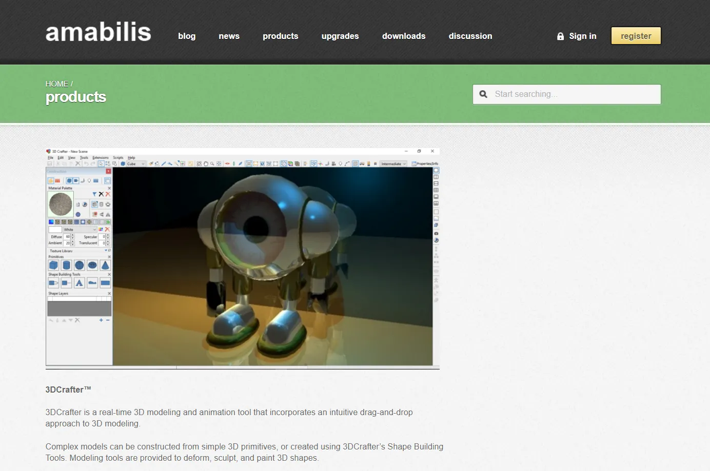 3DCrafter — это интуитивно понятный инструмент для 3D моделирования и анимации. Сложные модели могут быть построены из простых 3D примитивов или созданы с помощью инструментов построения форм. Инструменты моделирования позволяют деформировать, лепить и раскрашивать 3D формы.