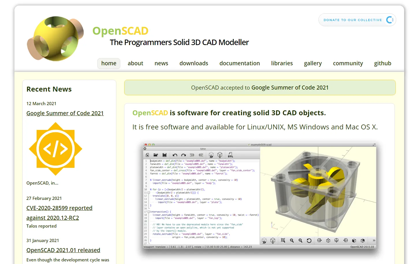 OpenSCAD — это бесплатное программное обеспечение для создания 3D моделей, доступное для Linux / UNIX, Windows и Mac OS X. В отличие от большинства бесплатных программ, оно фокусируется не на художественных аспектах 3D-моделирования, а на аспектах САПР и будет особенно полезна для тех, кому необходимо изготавливать запасные части для ремонта бытовой техники и решения подобных задач.