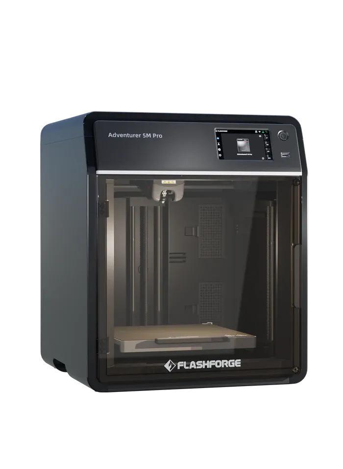Настройка 3D-принтера занимает всего несколько секунд благодаря системе автоматической калибровки. Adventurer 5M Pro также оснащен интуитивно понятным интерфейсом и сенсорным экраном, что делает процесс работы с ним максимально простым и удобным. Он поддерживает дистанционное управление, что позволяет отправлять задания на печать из любого места. Также принтер имеет систему очистки воздуха: угольные и HEPA13 фильтры, уменьшающие выбросы вредных частиц во время печати. Поставляется с соплами двух диаметров 0,4 и 0,6 мм, которые легко меняются. Благодаря этому появляется возможность печатать большим количеством материалов.