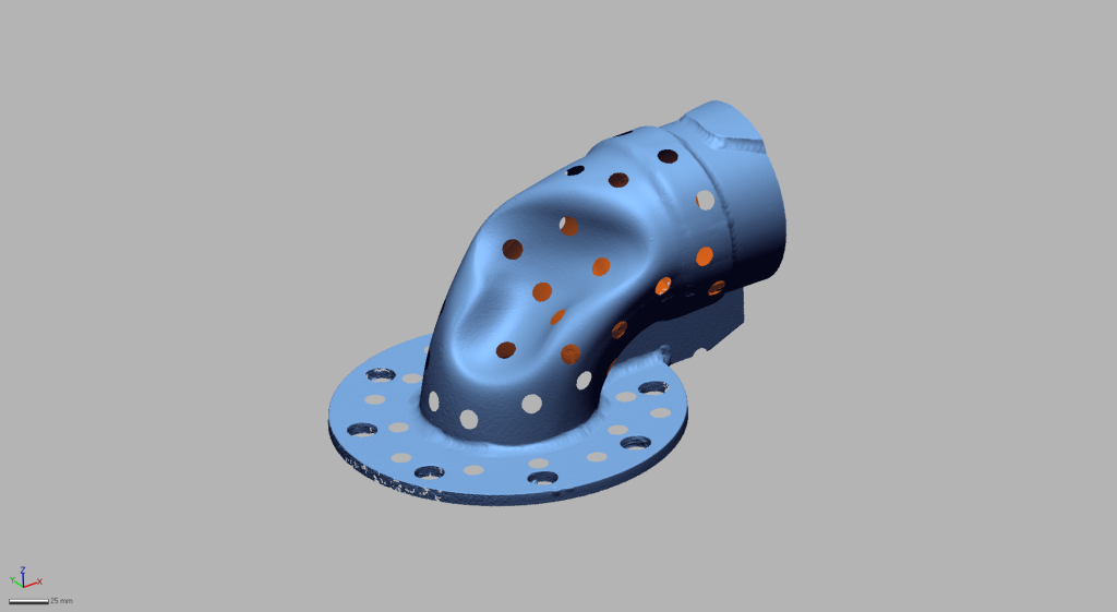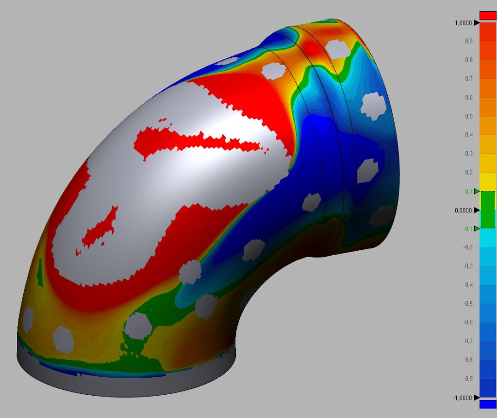Итогом стал высокоточный цифровой двойник деформированной трубы, который полностью повторял её геометрию и размеры с погрешностью менее 0,05 мм. Однако, поскольку целью было создание ровной детали, следующий шаг заключался в исправлении модели.