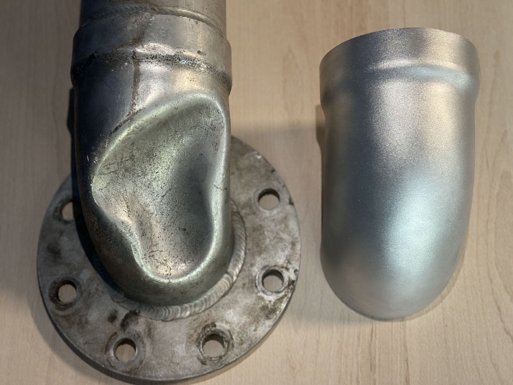 Итогом работы стала точная копия части трубы, напечатанная из металла с использованием технологии SLM. Деталь была идеально ровной, без каких-либо следов деформаций, присутствовавших в оригинале, и полностью соответствовала заданным размерам и характеристикам.