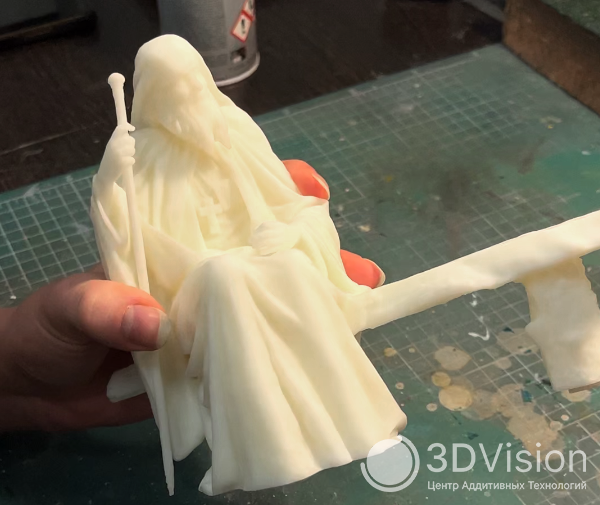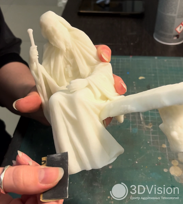 Для покраски изделий из фотополимеров рекомендуется использовать многокомпонентные акриловые краски, которые хорошо держатся на непористых материалах, так как изделия, напечатанные по технологии SLA, обладают гладкой поверхностью. Перед покраской нам было необходимо провести постобработку, включая удаление остатков поддержек.