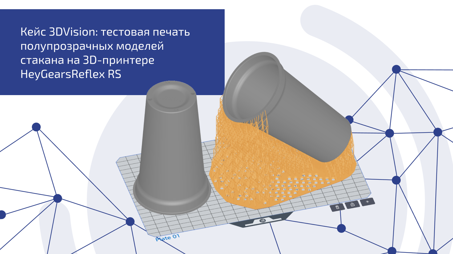 Кейс 3DVision: Тестовая печать полупрозрачных моделей стакана на 3D-принтере HeyGears Reflex RS