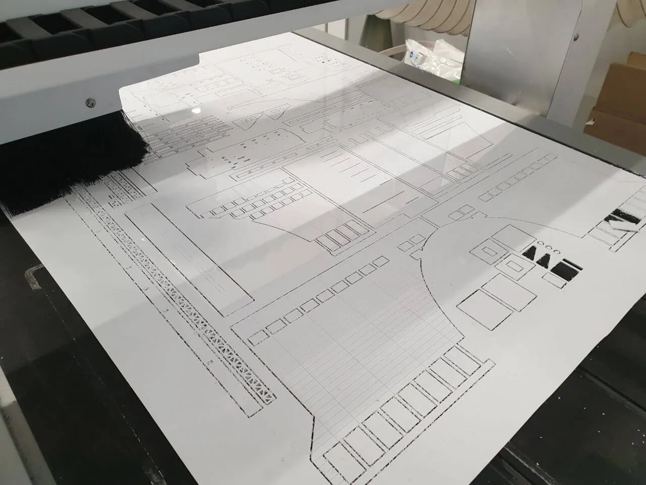 Далее части макета мы условно разделили на 2 группы: подготовленные к 3D-печати и развертки для резки на фрезерном, лазерном и плоттерном станках.