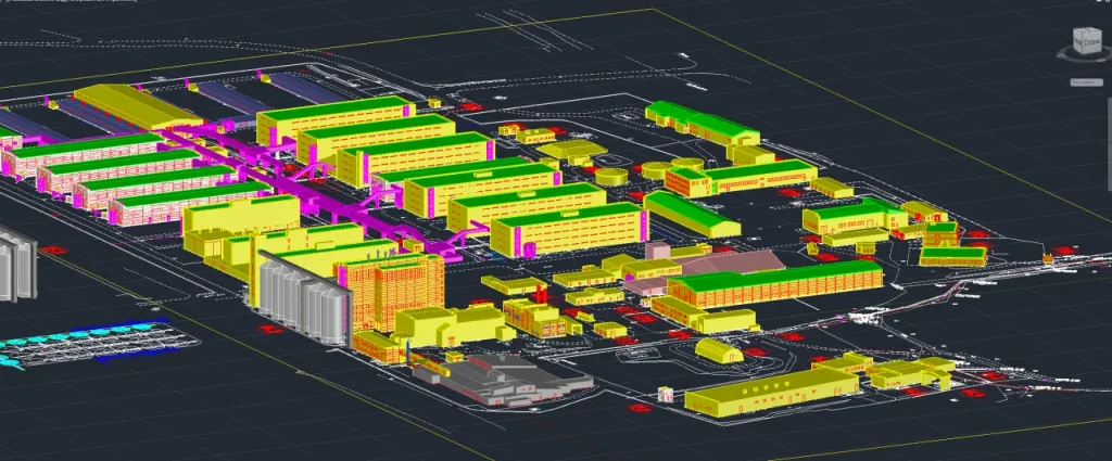 После согласования ТЗ можно приступать к моделированию. Было принято решение разделить макет на 2 масштаба (1:1000, 1:250), так как важно показать весь комплекс птицефабрики и отдельные важные здания с разрезом для демонстрации оборудования внутри.