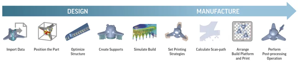 Принтер поставляется с запатентованным 3D Systems программным обеспечением 3D Xpert. Данный инструмент подходит для импорта данных по объекту, его позиционирования, оптимизации геометрии и настройки сетки, создания оптимальных опор, симулирования печати и пост-обработки, установления стратегий печати, вычисления траектории сканирования, настройки платформы и отправки детали на печать и даже для обработки конечного продукта (когда необходимо).