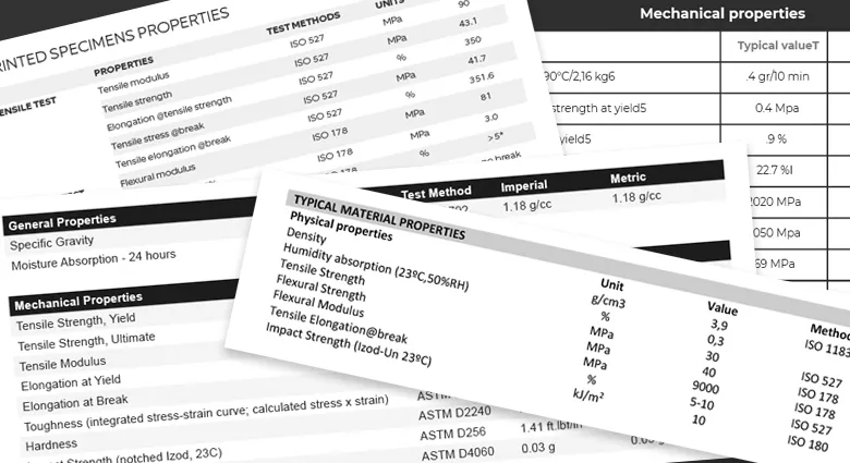 В настоящее время паспорта материалов для 3D-печати представляют собой документы с нагромождением противоречивых данных. Для их получения производители прибегают к разным методикам тестирования и различным измерениям свойств материалов, например, прочности на разрыв и удлинение при растяжении. Однако и эти данные часто оказываются недоступными для широкого круга покупателей.