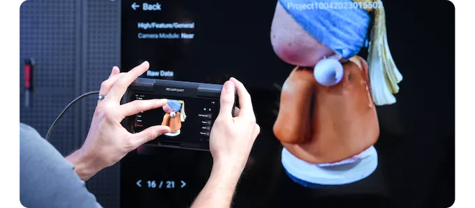 Оцифровывайте исторические предметы с фотореалистичными цветными деталями для сохранения или реставрации без прямого контакта, предотвращая повреждения, которые могут возникнуть при использовании традиционных методов измерения.