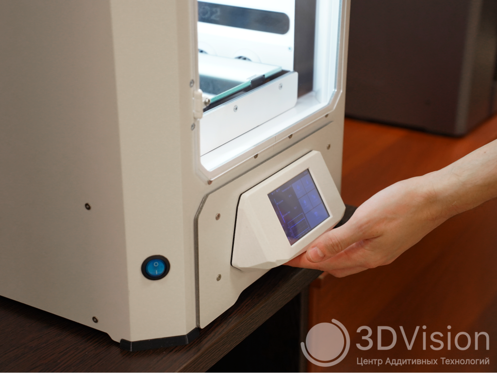 Сенсорный дисплей с удобным интерфейсом упрощает взаимодействие с принтером, а закрытый корпус устройства с прозрачными дверцами позволяет наблюдать весь процесс печати вблизи без вреда здоровью от расплавленного филамента и резких запахов пластика.