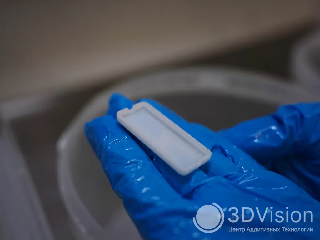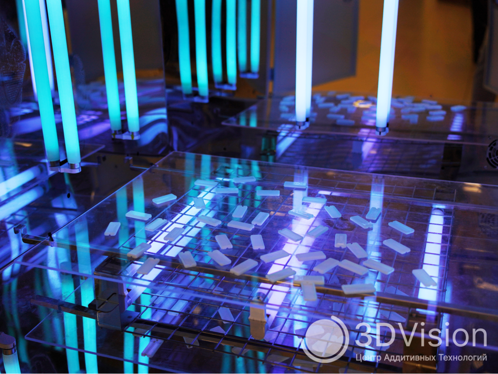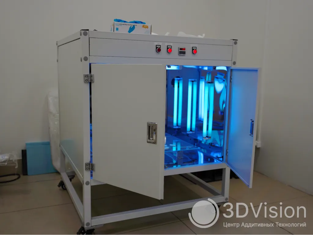 Затем изделие подвергается засветке в ультрафиолетовой камере для окончательной полимеризации материала и закрепления его физико-механических свойств.