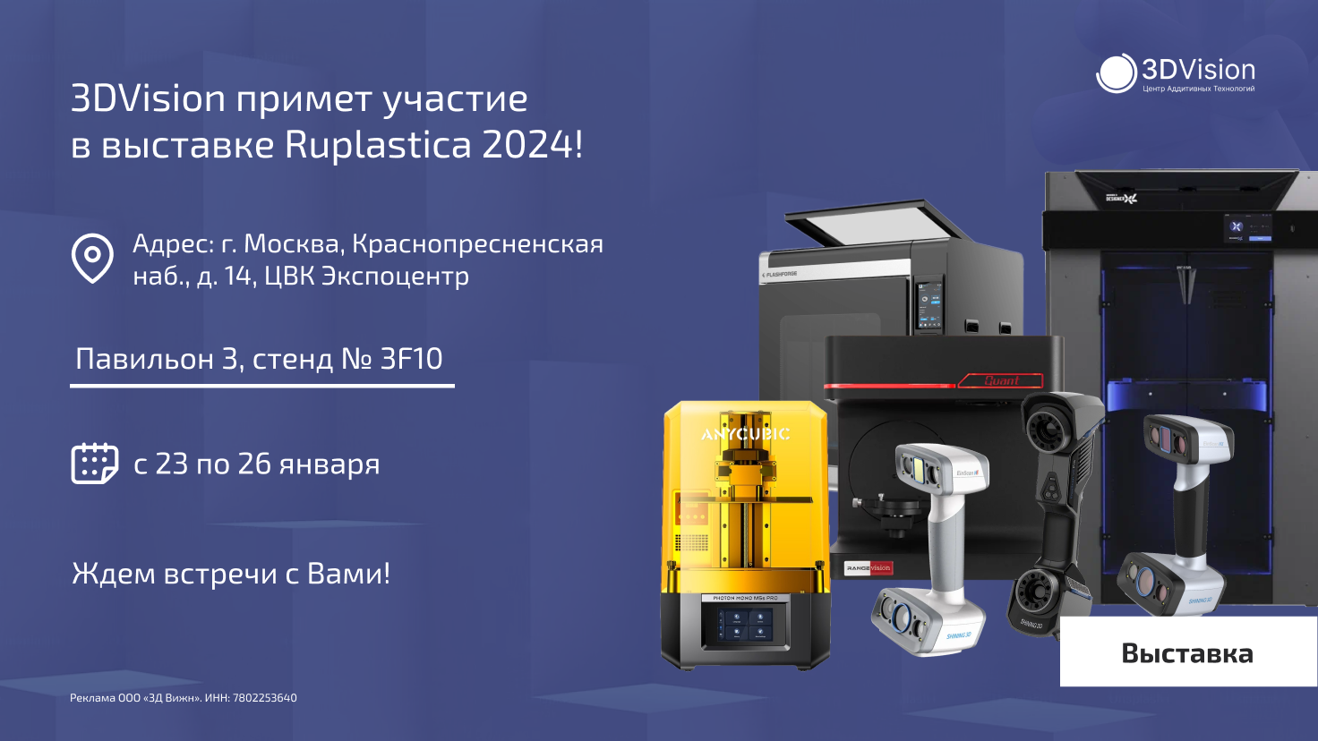Компания 3DVision приняла участие в международной выставке Ruplastica 2024. Мы гордимся тем, что были частью этого захватывающего и инновационного события в мире пластиковой индустрии и аддитивных технологий.