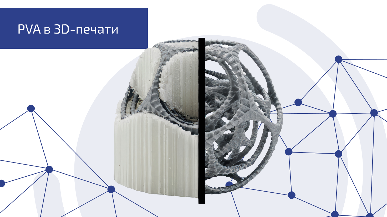 Хотя технология 3D-печати зародилась еще в 1980-х годах, PVA долгое время не использовался в этой сфере. Причина заключалась в его высокой гигроскопичности (способности впитывать влагу), что делало материал сложным в хранении и использовании. Прорыв в применении PVA для 3D-технологии произошел в 2006 году, с развитием многоматериальной FDM-печати, когда стало возможным печатать детали из двух материалов одновременно. Это позволило использовать PVA в качестве водорастворимого поддерживающего материала для сложных конструкций с нависающими элементами, мостами и внутренними полостями, которые трудно или невозможно печатать без поддержки.
