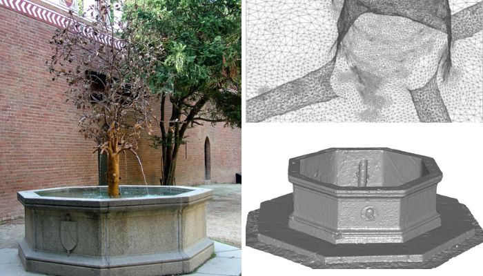 Еще один очень интересный проект реализуется кафедрой земли, окружающей среды и геоинженерии Политехнического университета Турина, которая выбрала 3D-сканер Handyscan компании Creaform для улучшения документирования и реставрации памятников культуры. Кафедра уже использовала технологию дистанционного сбора данных LIDAR, но этот метод больше подходит для картографирования, чем для сканирования мелких деталей. Поэтому необходимо было внедрить 3D-сканирование. Этот инструмент обеспечивает высокую точность (до 0,05 мм) при портативности и простоте использования. Используя его, ученые кафедры отсканировали Фонтан ди Мелограно в средневековой крепости Валентино в Турине, чтобы восстановить памятник.