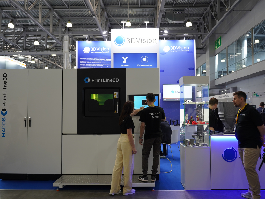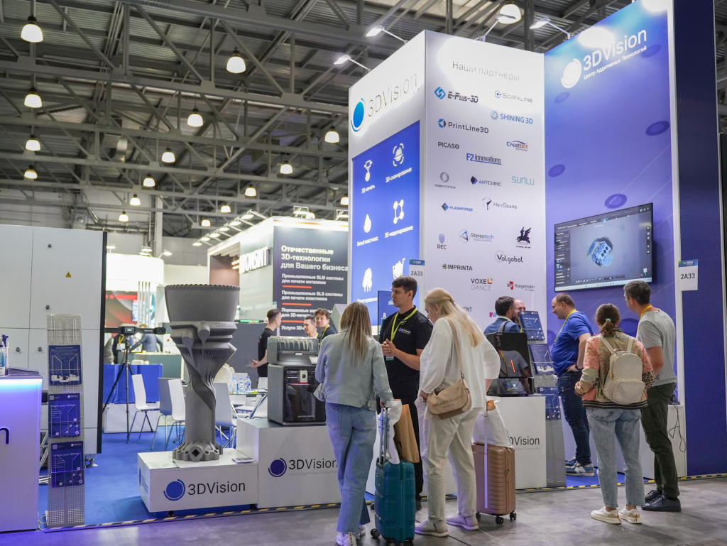 Среди других участников особенно выделялась масштабная экспозиция нашей компании 3DVision — лидера на рынке аддитивных технологий. Именно она первой встречала посетителей и стала настоящей жемчужиной выставки, привлекая внимание не только размерами, но и инновационным подходом к демонстрации своих решений.