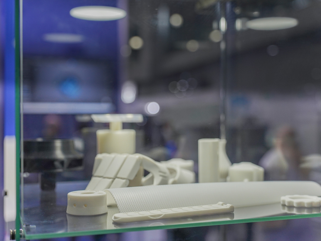 Отдельное место на стенде заняла экспозиция готовых изделий, наглядно демонстрирующая возможности современных 3D-технологий:
