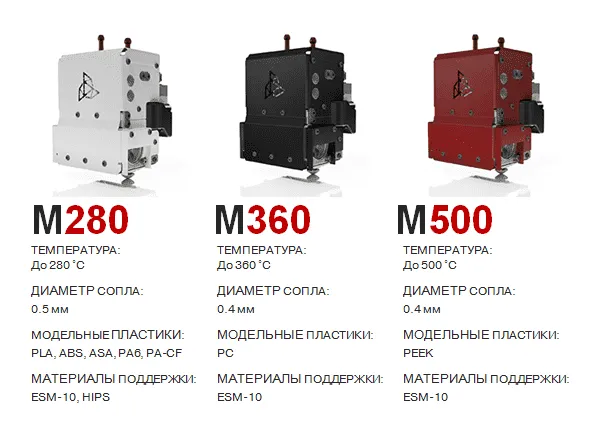 Сочетание нагретой камеры для печати, камеры для материалов, а также соответствующих температур экструзии гарантирует, что отпечатки, сделанные из высокопроизводительных полимеров, таких как PC или PEEK, всегда будут наилучшего качества.