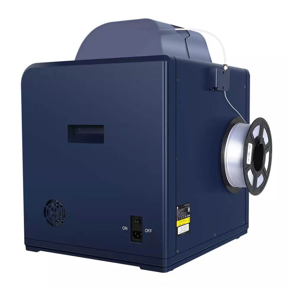 Стильный дизайн 3D принтера предусматривает плавные обтекаемые формы. Корпус с закрытым каркасом из листового металла устраняет вибрации при 3D печати. Размеры области построения модели внушительны - 270x210x190 мм, тем не менее, сама модель компактна. Для наблюдения за процессом печати доступ к рабочей камере осуществляется через прозрачную дверцу. Яркая светодиодная подсветка белого цвета обеспечивает удобное наблюдение за процессом печати.