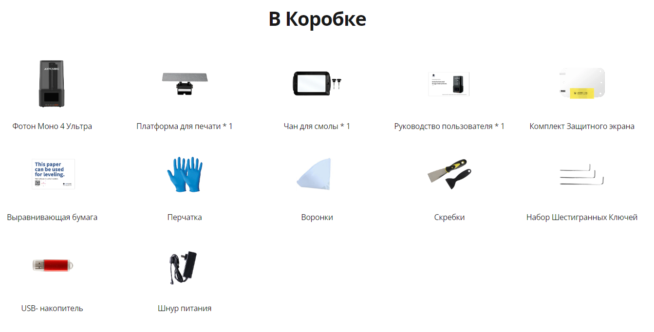 Каждый принтер Photon Mono 4 был собран, откалиброван, настроен и протестирован перед отправкой. Поэтому, когда вы получили принтер, просто распакуйте его и начните печатать: калибровка и настройка не требуется. Перед печатью необходимо только выполнить выравнивание рабочего стола.