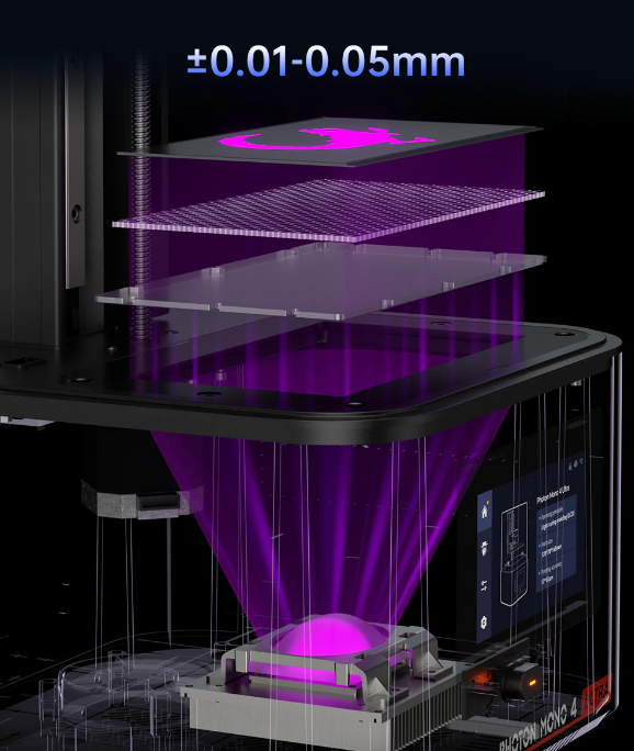 Используя алгоритм равномерности света, 3D принтер Anycubic Mono 4 10K Ultra обеспечивает согласованность на всех уровнях, эффективно контролируя энергию света. Этот метод позволяет минимизировать ошибки в размерах каждого слоя, обеспечивая стабильность процесса печати. Кроме того, принтер оснащен специальной пленкой ACF с матовой текстурой, повышающей светопроницаемость и улучшающей процесс освобождения. В результате уменьшается время, необходимое для печати, и облегчается процесс освобождения изделий. Абсолютно новый источник света COB в сочетании с линзой Френеля, обеспечивают практически идеальные результаты в 3D-печати с разрешением 10К.