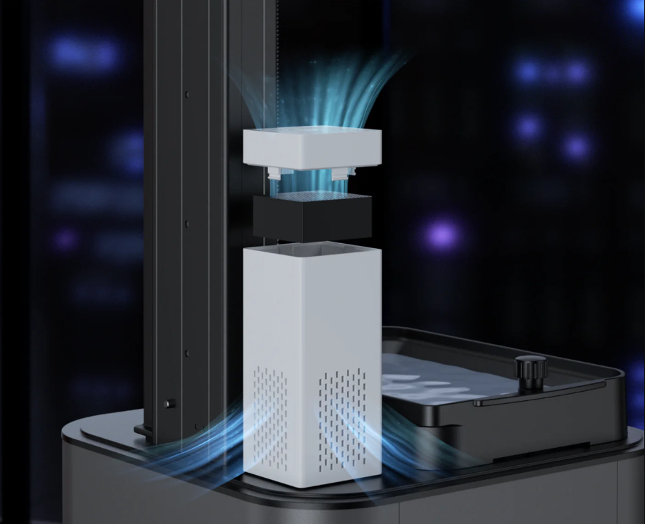 При помощи устройства Anycubic AirPure с угольным фильтром можно значительно улучшить качество воздуха, благодаря его способности устранять неприятные запахи, возникающие при печати на 3D-принтере.