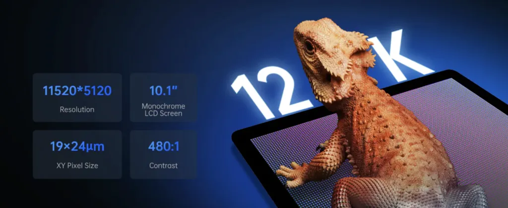 Благодаря монохромному ЖК-экрану и разрешению 12K (11520 x 5120 пикселей) 3D принтер Photon Mono M5 обеспечивает точность 19 мкм.