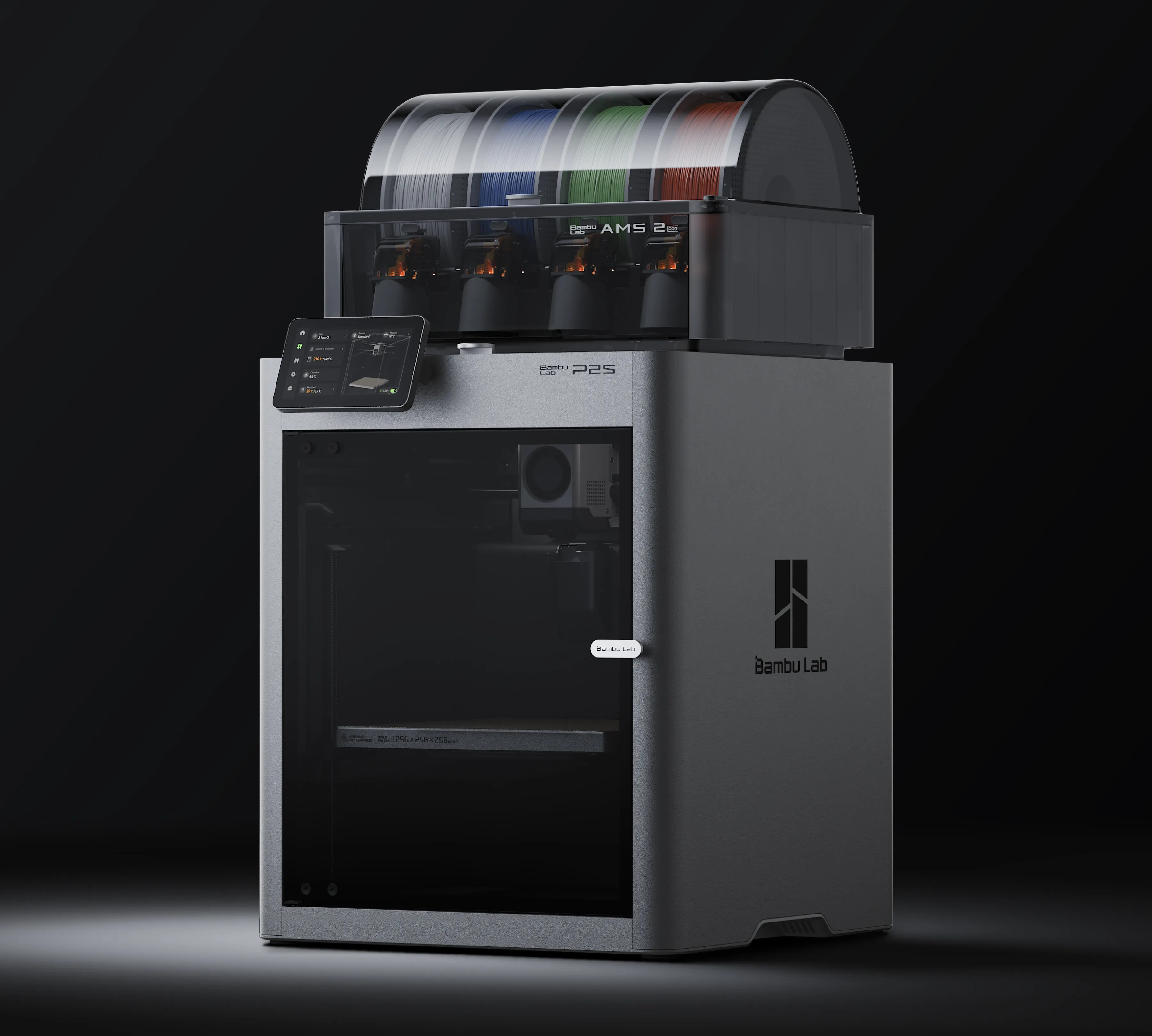 Bambu Lab P1S Combo поставляется в закрытом пластиковом корпусе и имеет стандартную для всей линейки 3D-принтеров Bambu Lab рабочую область размером 256х256х256 мм.