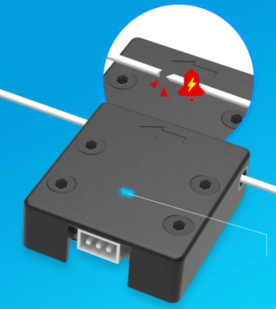 - Датчик обрыва нити – автоматически приостанавливает печать при переломе или нехватке филамента.