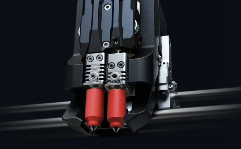 1. Надежная двойная экструзия с мгновенным переключениемПечатающая головка Sermoon D3 Pro оснащена двумя хотендами в одном экструдере. Двойная экструзия обеспечивает высокую скорость потока 32 мм³/с и печать при температуре 300 ℃. Односторонняя система подъема одного из сопел позволяет быстро переключать экструзию. Система прошла строгое тестирование для обеспечения надежности и точности.