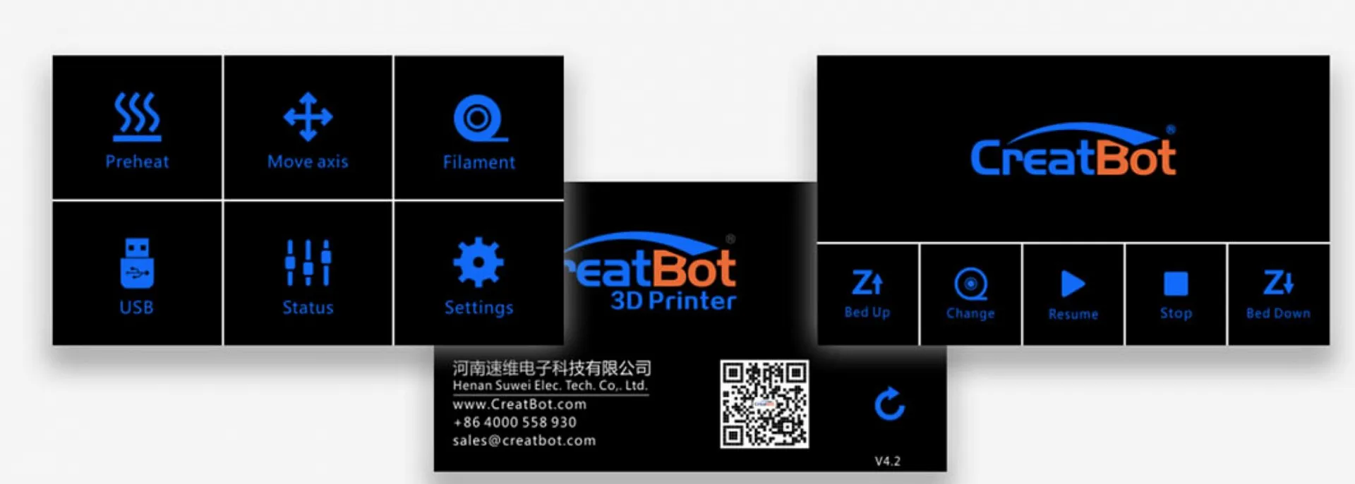 3D-принтер CreatBot модели D600 PRO имеет удобный 4,3-дюймовый сенсорный экран, обеспечивающий доступ к нужным опциям в один клик.