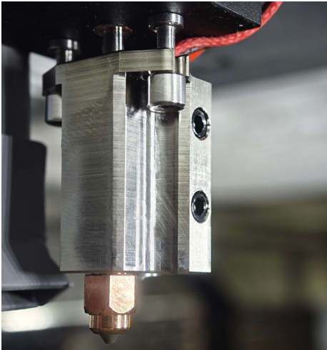 Интегрированная литая износостойкая сопловая группа заменяется за 30 секунд без необходимости демонтажа других компонентов или винтов. Принтер оборудован системой водяного охлаждения, критически важной для стабильной печати высокотемпературными материалами, и оснащен высокоэффективной экструдерной системой сверхвысоких температур.