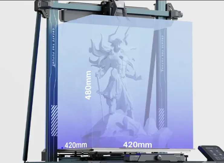 - Увеличенный рабочий объем 420 х 420 х 480 мм (для сравнения: Neptune 4 Plus имеет объем 320 х 320 х 385 мм).
