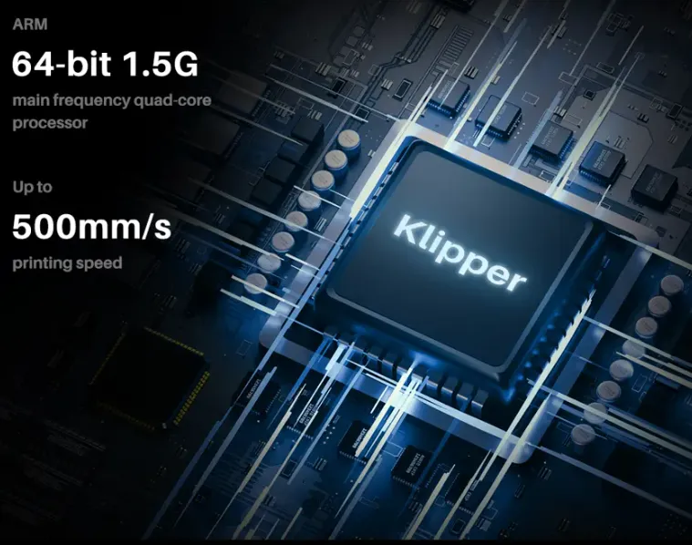 - Высокоскоростная материнская плата Klipper, 64-разрядный четырехъядерный процессор ARM с тактовой частотой 1,5 ГГц.