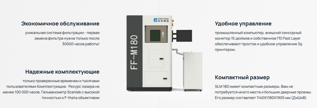 FF-M180D – это передовая установка, оснащенная двумя мощными лазерами, для высокоточной 3D-печати металлическими материалами, представляющая собой идеальное решение для производства сложных изделий из титана, кобальт-хрома и других металлов. Этот компактный, мощный и надежный 3D-принтер предназначен для использования в таких сферах, как: стоматология, машиностроение, высокотехнологичные отрасли.