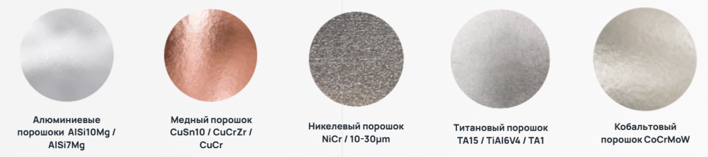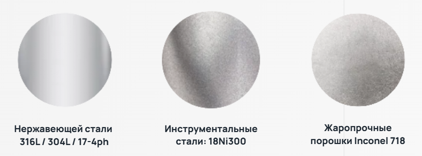 | Материалы | Кобальт-хром, титан, алюминий, сталь, инконель, молибден, вольфрам и другие |