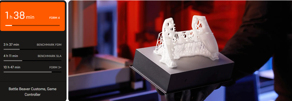 Formlabs Form 4 представляет собой универсальное решение для 3D-печати, которое успешно применяется в различных сферах: от автомобильной и аэрокосмической промышленности до производства потребительских товаров, образования и научных исследований. Рабочая зона принтера составляет внушительные 200×125×210 мм. Инновационный световой модуль LFD оснащен 60 светодиодами и коллимирующими линзами, что обеспечивает равномерное освещение высокой мощности. Система позволяет достигать впечатляющих скоростей печати при сохранении высочайшего качества и точности в любой точке рабочей платформы.