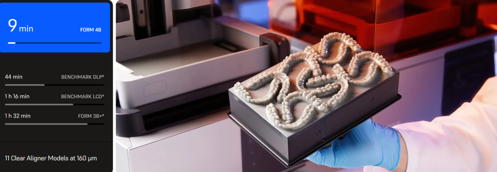 Formlabs Form 4B Dental представляет собой специализированное решение в области стоматологической 3D-печати. Это профессиональный фотополимерный 3D-принтер, созданный с учетом специфических требований стоматологической практики.