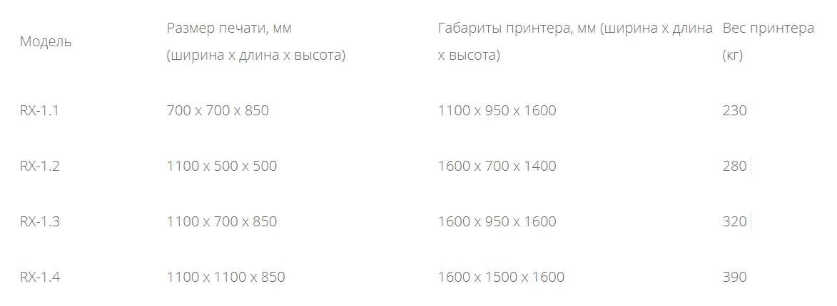 3Д принтеры Magnum RX-1 выпускается в модификациях с размером камеры печати от 700 х 700 мм до 1100 х 1100 мм.