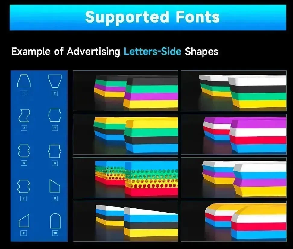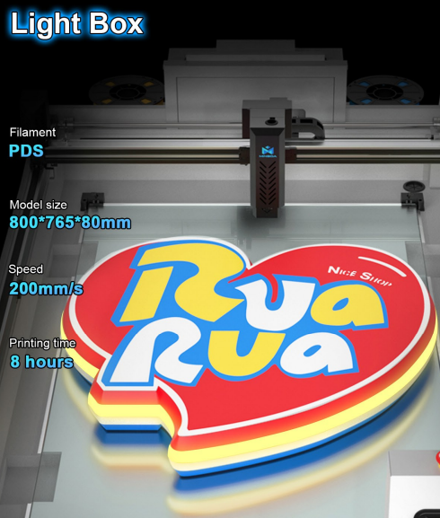 Принтер MINGDA AD-F4 оснащён передовой системой подачи материала IMS, позволяющей автоматически переключаться между четырьмя цветами. Это делает печать цветных букв и рекламных элементов более гибкой, яркой и выразительной — без необходимости в ручной смене филамента.