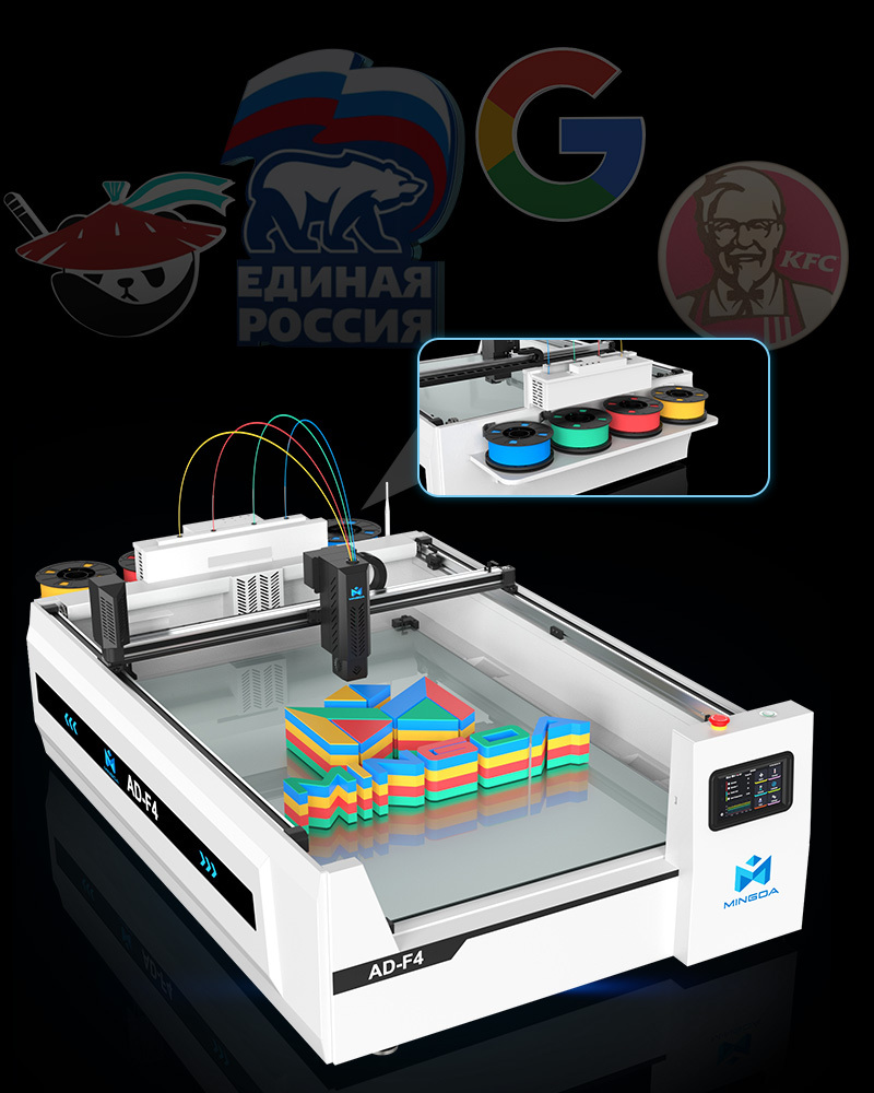 Благодаря автоматической смене до четырёх цветов, встроенному программному обеспечению для моделирования и поддержке удалённого управления, AD-F4 идеально подходит как для малого бизнеса, так и для крупных производственных предприятий. Эта модель — выбор тех, кто стремится к быстрому, надёжному и экономически выгодному 3D-производству.