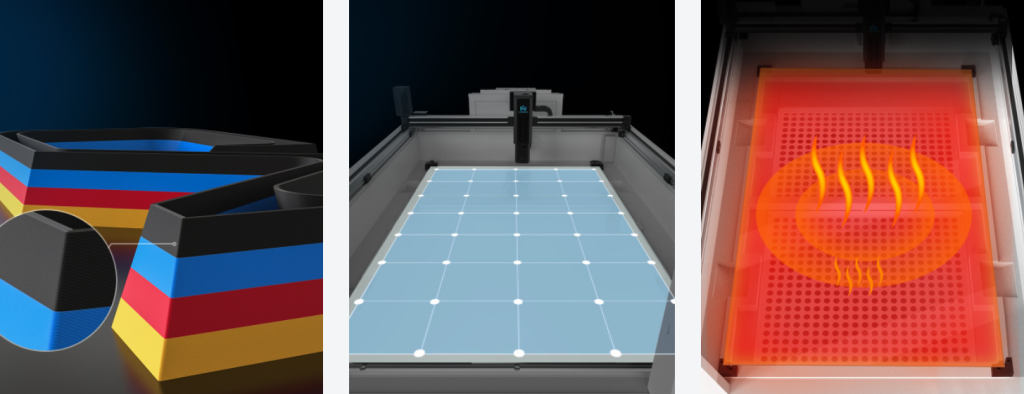 Это позволяет печатать крупные объекты за меньшее время, без потери качества и с высокой производительностью.