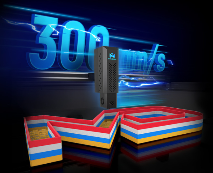3D-принтер MINGDA AD-F4 работает с прошивкой Klipper и поддерживает невероятную скорость печати до 300 мм/с, с пиковым ускорением 10000 мм/с². Разгон до максимальной скорости занимает всего 0,035 секунды, что позволяет печатать быстро и точно даже крупные объекты.