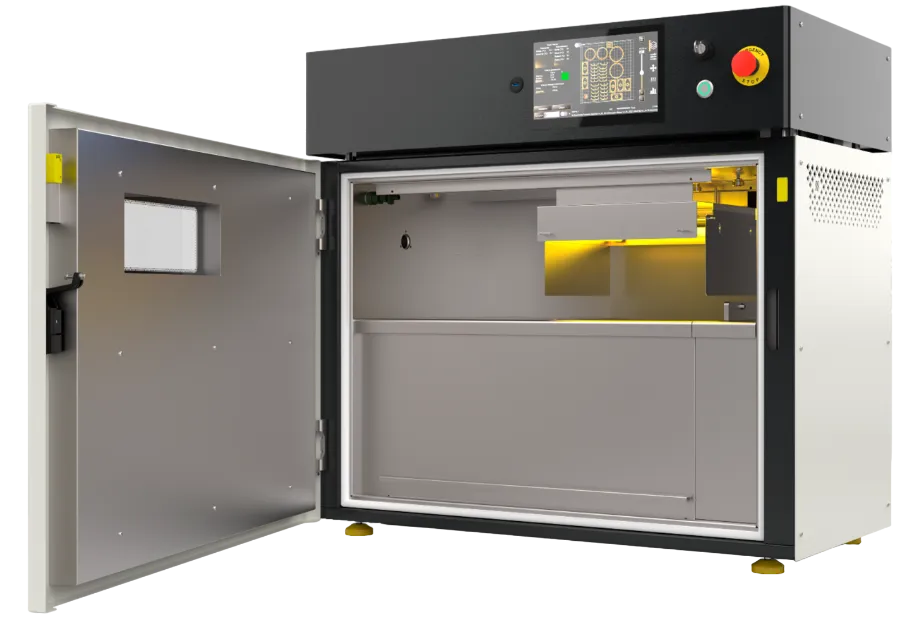 В составе машины - CO2 лазер мощностью 30 Вт, наиболее подходящий для технологии спекания термопластиков.Благодаря CO2 лазеру установка способна работать с широким спектром материалов.