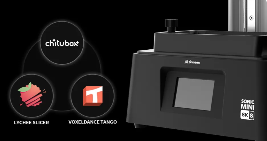 Phrozen Sonic Mini 8K S работает с файлами открытого формата, которые совместимы с большинством слайсеров. Это позволяет пользоваться любыми доступными программами для подготовки файлов к 3D печати - платными и бесплатными версиями.