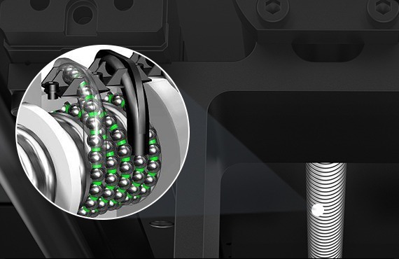 3D-принтер C01 сконструирован с акцентом на стабильность: усиленная ось Z с двойными линейными направляющими и шарико-винтовым приводом обеспечивает плавное и точное формирование слоёв. Такая конструкция минимизирует вибрации и снижает риск брака, позволяя получать идеально ровные и качественные отпечатки.