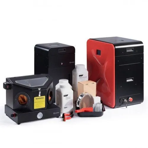 Комплект Sinterit Lisa Set представляет собой набор, который позволит основательно подойти к процессу печати, так как включает в себя все необходимое: 3D принтер, станции для просеивания и очистки, а также полимер в качестве расходного материала. Принтер работает на основе современной технологии лазерного спекания, которая до этого была доступна только в промышленной сфере. Он отличается сравнительно недорогой ценой, поэтому может использоваться и в домашних условиях. Получаемые модели отличаются высокой прочностью и стойкостью, легко поддаются обработке и могут иметь даже сложную форму. Для качественной подготовки материала используется специальная установка Sinterit Sieve, позволяющая устранить комочки и примеси из порошка, тем самым увеличивая сцепляемость. Станция очистки Sinterit Sandblaster применяется в финишной обработке изделия и полировке его поверхности. Порошок Sinterit PA12 Smooth – качественный расходный материал от производителя, представляющий собой порошок с грануляцией 20-100.