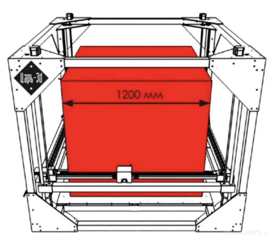 Максимальные габариты изделия — 1200 х 1200 х 1200 мм. Этого хватит на печать мебели, дизайнерских изделий и прототипов в полном размере. Царь 3D принтер находится вне конкуренции по соотношению полезного объёма к цене во всем мире.